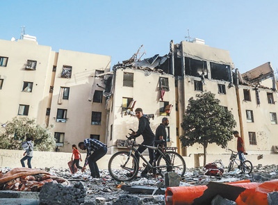 加沙地帶巴勒斯坦武裝派別與以色列軍方于5月6日凌晨達成停火協議,當地局勢有所緩和。圖為6日,在加沙城,巴勒斯坦人查看遭以軍空襲損毀的房屋。新華社發