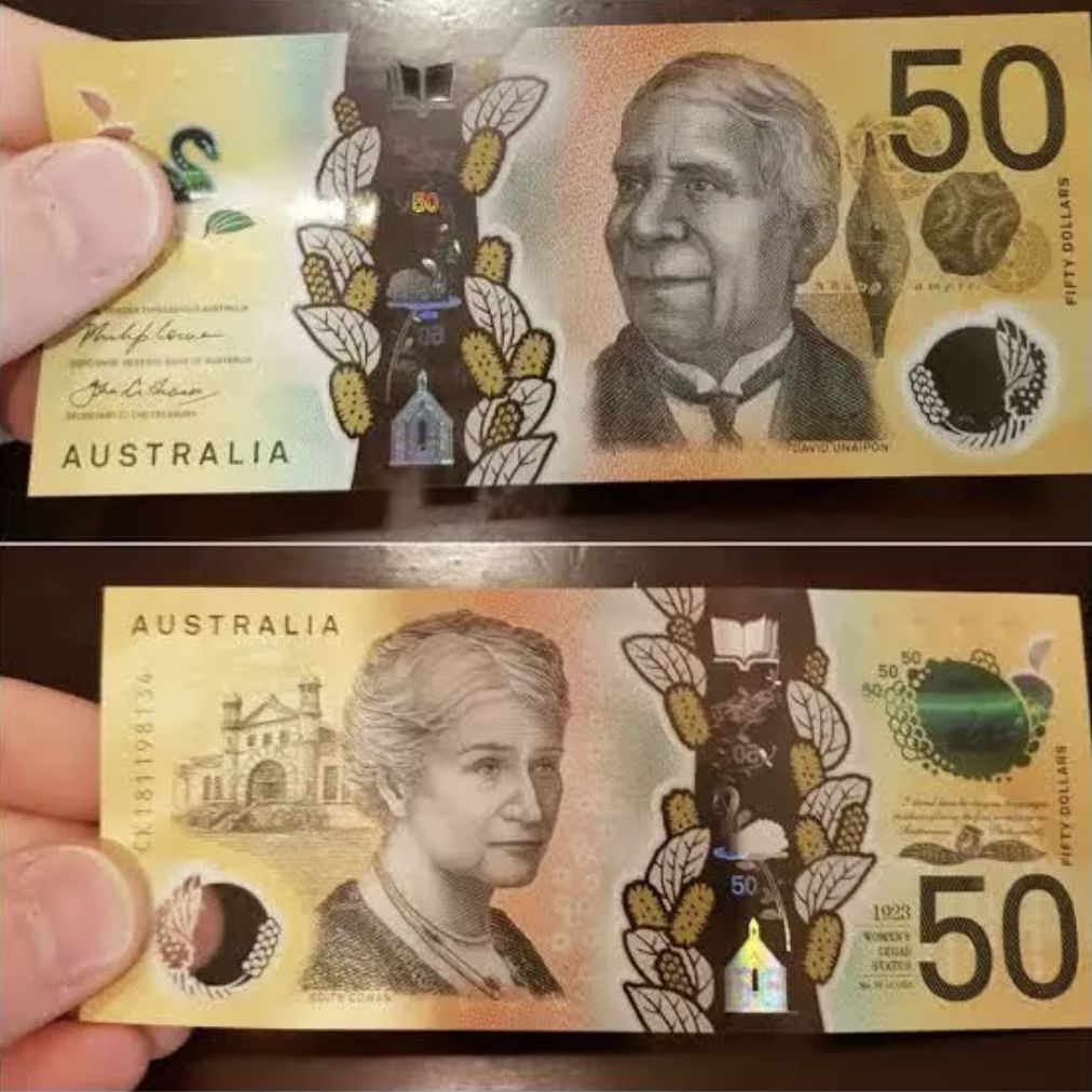去年10月開始流通的新款50澳元紙幣設計了新型防偽措施,其中包括一只會根據觀察角度變化而變化的天鵝,以及一張當紙幣移動時就會反轉的全息圖。