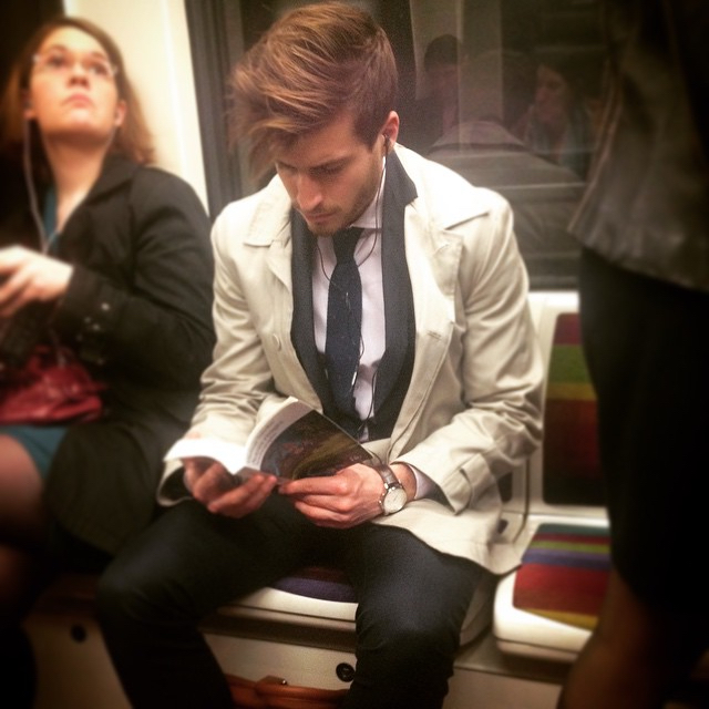 總體來說,巴黎地鐵里大部分的本地乘客還是喜歡戴著耳機(jī)聽音樂,或是低頭讀書。在車廂人不多的時候,有些乘客喜歡坐下來專注的讀書,用閱讀把自己和旁邊的乘客“隔開”。如果車廂人很多,有些乘客會嘗試把自己縮在某個能夠穩(wěn)固站立的角落,或者一手扶著扶手,另一手捧著書。有的人同時戴著耳機(jī)、捧著書,在擁擠的車廂里為自己建立了一個徹底隔絕的小空間。