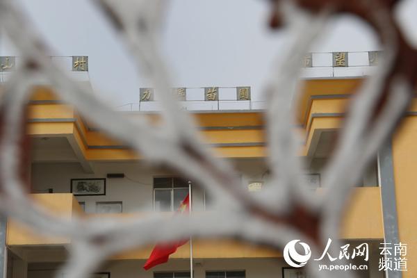 轉(zhuǎn)山包小學(xué),校門上結(jié)滿了冰霜。攝影:張強(qiáng)
