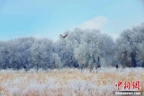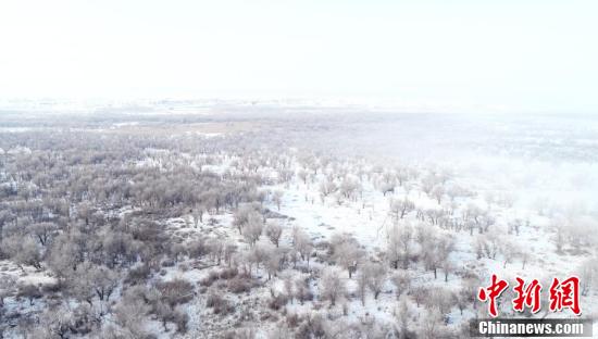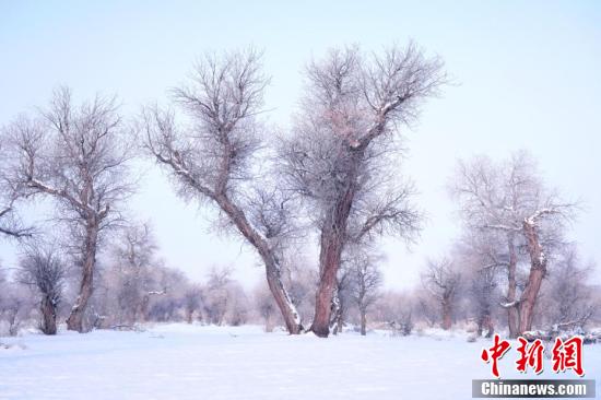 位于新疆克拉瑪依市烏爾禾區白楊河大峽谷景區,被大雪覆蓋后形成的霧凇緊緊包裹的胡楊枝干,宛如玉樹瓊花,清秀雅致,放眼望去渾然一副水墨肆意潑就而成的風景畫,極具視覺沖擊,如夢似幻。王嘉豪 攝