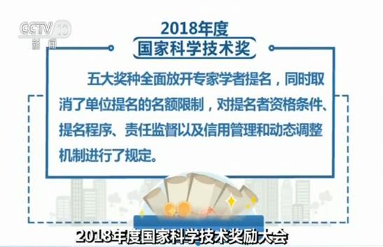 2018年度國家科學技術獎五大獎種全面放開專家學者提名,同時取消了單位提名的名額限制,對提名者資格條件、提名程序、責任監督以及信用管理和動態調整機制進行了規定。