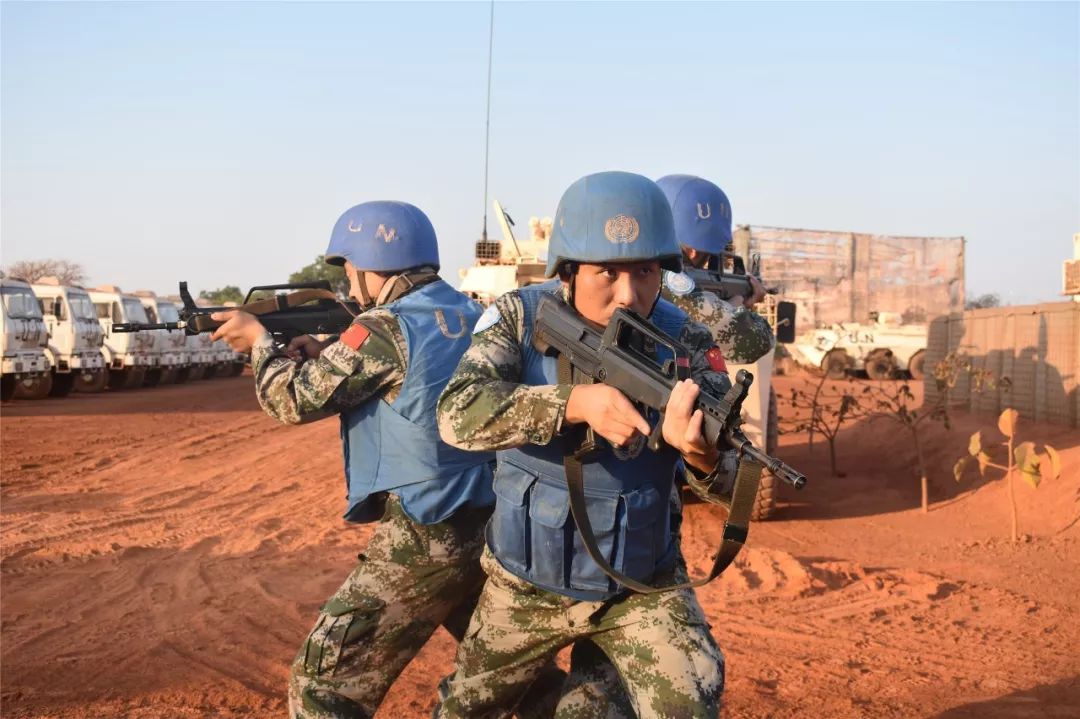 “應急班,前方出現不明身份武裝人員,按2號方案,執行!”只聽一陣槍響,中國第九批赴南蘇丹維和工兵分隊的防衛演練正式打響。接到任務,郭成成立即帶領本班戰士奔向戰位,快速完成防武裝人員滲透、防汽車炸彈闖卡等多個課目演練。