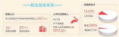 黨的十八大以來,湖南省認真貫徹落實習近平總書記關于扶貧工作的重要論述,扎實推進精準扶貧精準脫貧基本方略落實落地,將精準要求貫穿脫貧攻堅全過程。從2014年起連續7次開展貧困人口建檔立卡動態調整。因地因村因戶施策,著力做到一村一個脫貧規劃、一村一支攻堅隊伍,一戶一本臺賬。著力在體制機制、工作方法、脫貧路徑等方面積極探索,蹚出一條“四跟四走”產業扶貧發展新路子。完善貧困退出驗收細則,強化脫貧退出基層責任,實行貧困退出“三簽字”,確保脫貧退出標準達到、程序完整、結果真實、群眾認可、社會認同。貧困地區“行路難、飲水難、用電難、通信難、就醫難、上學難”等問題得到改善,貧困群眾獲得感和幸福感大幅提升。