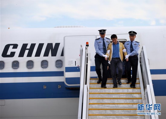 在北京首都機場,“百名紅通人員”任標回國投案(2017年7月29日攝)。 新華社記者 金立旺 攝