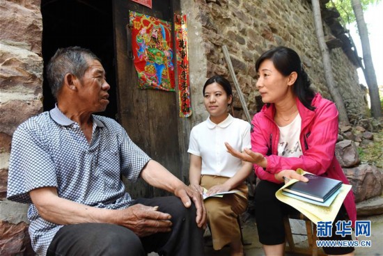 2018年6月12日,河北省沙河市紀委監察委工作人員在蟬房鄉口上村向村民了解扶貧資金落實情況。 新華社記者 朱旭東 攝