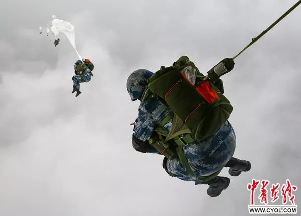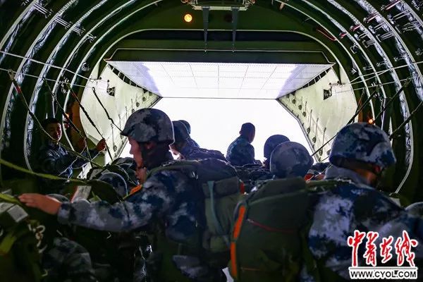 訓練開始前,天氣越來越陰沉,空中能見度降低,但訓練計劃維持不變,一架架戰鷹按計劃準時抵達。在戰友們的加油聲中,新訓女兵信心滿懷地登上飛機。“大家要大膽離機,離機時一定要三步走穩,你們是最棒的!”飛行過程中,為了減緩女兵們的緊張情緒,投放長任津再三提醒動作要領,并組織大家高唱《空降兵戰歌》,不停加油鼓勁兒。