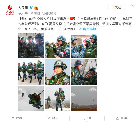 在全軍新年開訓的火熱浪潮中,這群平均年齡不到20歲的“雷霆玫瑰”巾幗不讓須眉,在千米高空書寫“兵之初”的最美篇章。