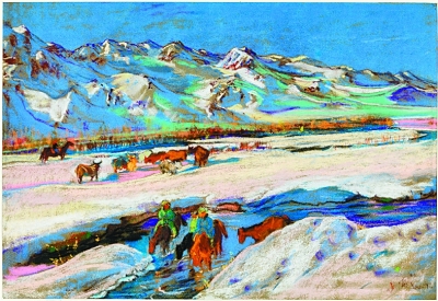“北風卷地白草折,胡天八月即飛雪。忽如一夜春風來,千樹萬樹梨花開……輪臺東門送君去,去時雪滿天山路。山回路轉不見君,雪上空留馬行處。”(《白雪歌送武判官歸京》,人教版八年級語文下冊)這是岑參另一首著名邊塞詩。這首詩句句詠雪,勾勒出天山奇寒。全詩連用四個“雪”字,寫出別前、餞別、臨別、別后四個不同畫面的雪景,景致多樣,色彩絢麗,十分動人。