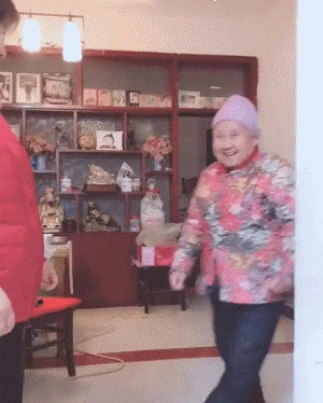 最后,一身花棉襖的老奶奶笑盈盈走出來,她可能不明白孩子們的游戲,但還是開心地應了聲“哎~”。