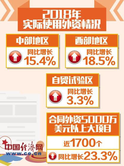 外資大項(xiàng)目實(shí)現(xiàn)快速增長。2018年,合同外資5000萬美元以上大項(xiàng)目近1700個,同比增長23.3%,顯示外商對華投資信心不減。并購方式實(shí)際使用外資同比增長28.4%。