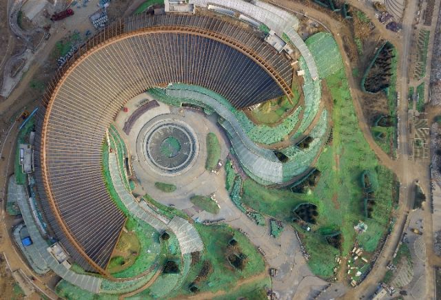 2019年1月11日,正在建設中的北京世園會中國館。