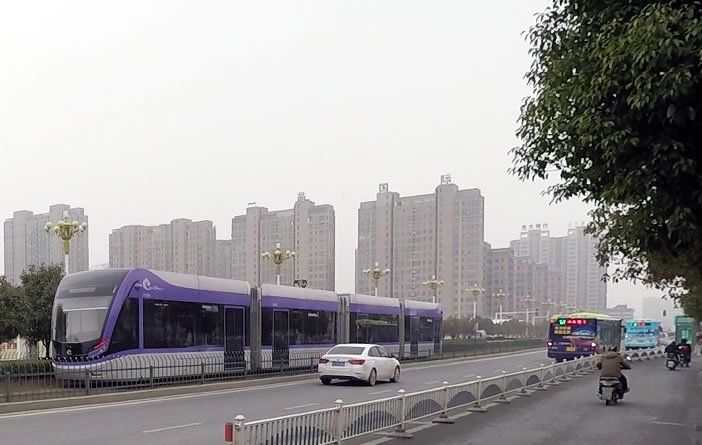 遠處的高樓林立,寬闊的大道上車流如織,延伸到遠方。道路中間的快軌列車像個精靈,載著古老的淮陰從歷史中駛來,駛向美好的未來。