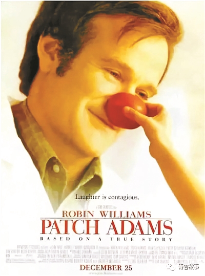 里面有個鏡頭,亞當誤闖進了兒童病房,小朋友躺在床上,沒有理會他的出現。病房里的孩子們得的都是重病,個個剃著光頭,亞當走向一個小女孩,問她的名字,拿起桌上的醫用橡皮球,剪成小丑的紅鼻頭戴在自己的鼻子上。他回頭的一瞬間,小女孩笑了。