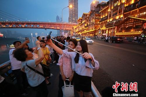 資料圖:小長假期間,游客在重慶洪崖洞景區觀光游玩。中新社發 蘇自剛 攝