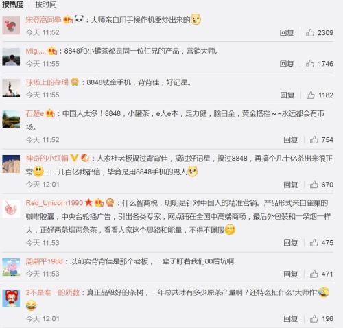 網友熱議小罐茶。微博截圖