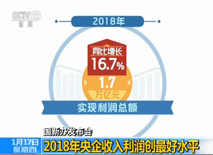 央視網消息:1月17日,國務院國有資產監督管理委員會秘書長彭華崗在國新辦新聞發布會上指出,2018年中央企業累計實現營業收入29.1萬億元,同比增長10.1%;實現利潤總額1.7萬億元,同比增長16.7%,創歷史最好水平。