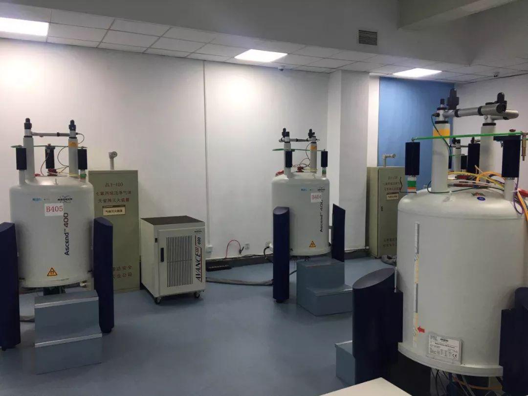 △在習(xí)近平參觀的這間實驗室中,這些白色罐子是核磁共振波譜儀。它利用超導(dǎo)產(chǎn)生的強大磁場可以提供從有機(jī)小分子到生物大分子的組成與結(jié)構(gòu)信息,是化學(xué)、材料學(xué)和生命科學(xué)研究者必不可少的研究手段之一。(央視記者李輝拍攝)