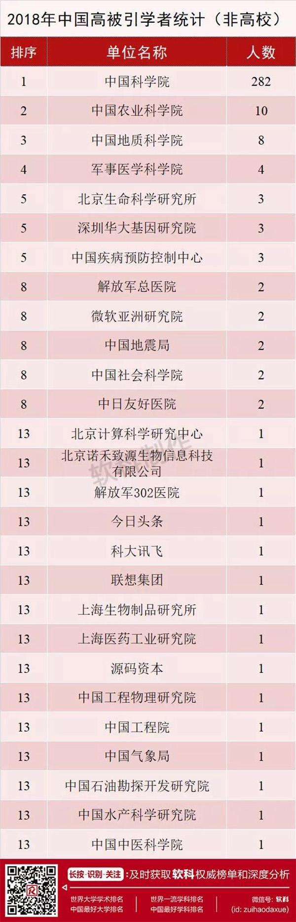 2018中國高被引學者榜單公布:中科院最多,清北浙大隨后