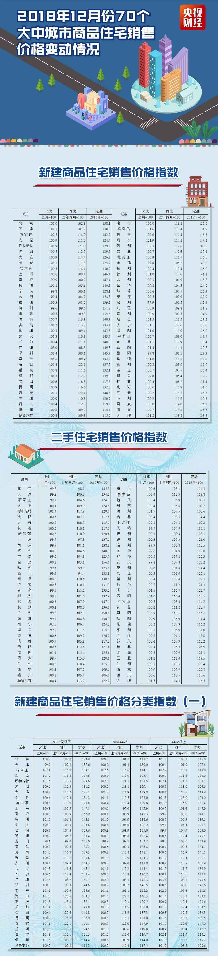 國家統計局今天發布的2018年12月份70個大中城市新建商品住宅銷售價格數據顯示:一線城市新建商品住宅銷售價格環比漲幅擴大,二手住宅價格繼續下降。