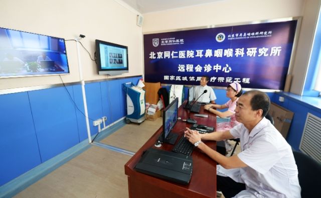 2016年8月23日,香河縣人民醫院醫生聯合北京同仁醫院專家遠程為香河患者會診。新華社記者 王曉 攝