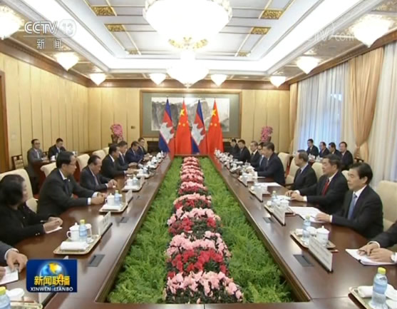 習近平強調,中方支持柬埔寨走符合本國國情的發展道路,相信在首相先生領導下,柬埔寨一定會在國家建設事業方面取得新的更大成就。中柬要在現有基礎上,重點加強政治、經濟、安全、人文四大領域合作。要保持高層往來,加強治國理政經驗交流,擴大兩國政府、立法機構、政黨、地方交往,深化在聯合國、中國―東盟、瀾湄合作等機制內的溝通協作。要加快“一帶一路”倡議同柬埔寨發展戰略對接,推進交通、產能、能源、貿易、民生等五大版塊合作。要加強文化、旅游、文化遺產保護和修復、青年等交流合作,深化執法安全合作。