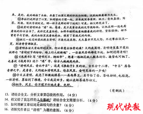 21日,現(xiàn)代快報(bào)記者采訪了西交大蘇州附中語(yǔ)文特級(jí)教師陳興才。他提出,“考題詭異到如此地步還說(shuō)正常,是借著考試學(xué)術(shù)的名義耍流氓!”