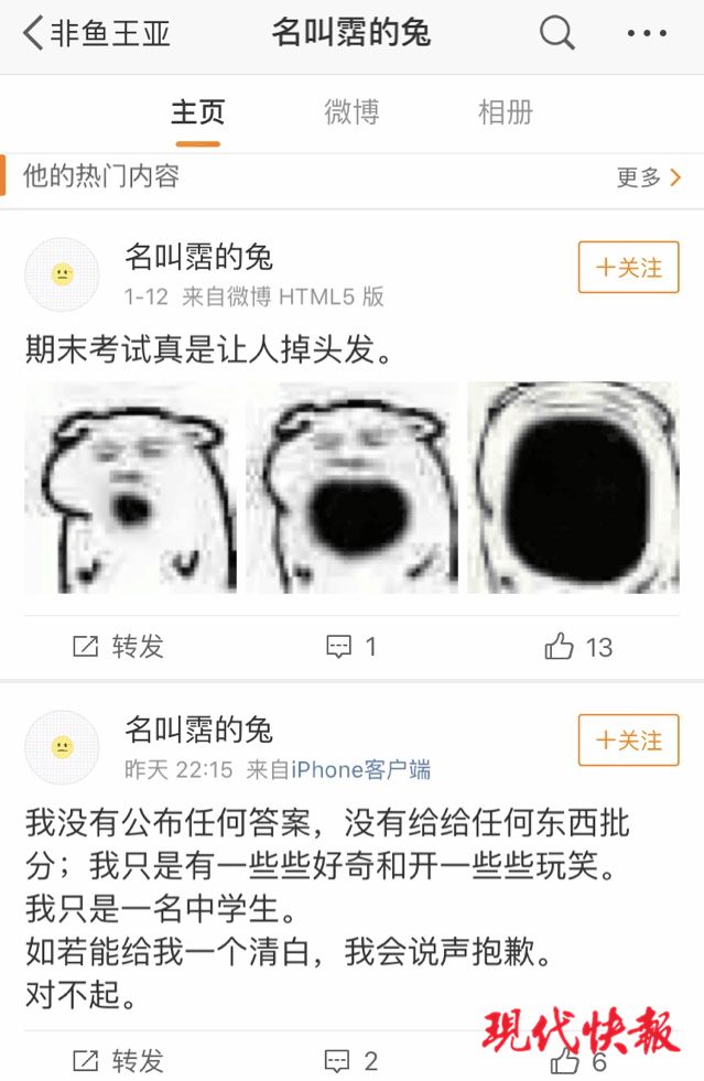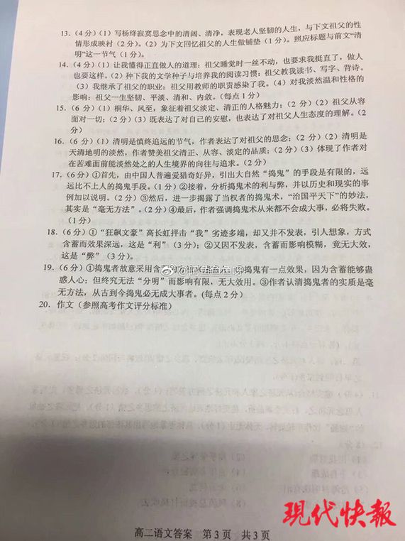 網(wǎng)友“謙謙與倫倫”是來(lái)自常熟的一名考生,她告訴現(xiàn)代快報(bào)記者,成績(jī)還沒(méi)出來(lái)。不過(guò)看到原作者只答了6分,自己拿0分也不足為奇。她也很理解作者,“之所以答6分可能是不太熟悉答題的套路。”
