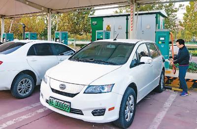 河北省邢臺市民在電動汽車充電站充電。 新華社記者 楊世堯攝