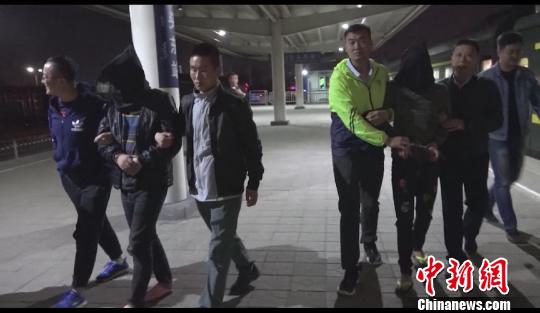 圖為民警將嫌疑人押解回包頭。 孫速 攝