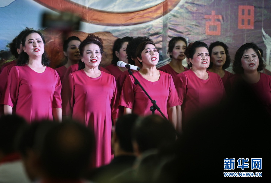 主要由二十里店村婦女組成的文藝隊正在演出。新華社記者 王菲攝