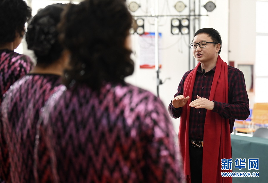 文藝隊隊員正在進行排練。新華社記者 王菲攝