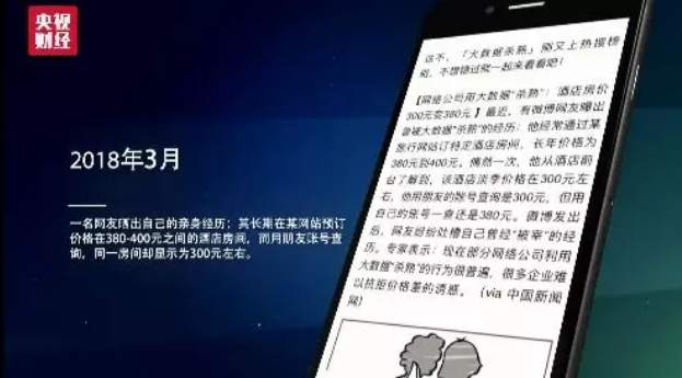 事件:2018年3月,一名網友曬出自己的親身經歷:其長期在某網站預訂價格在380—400元之間的酒店房間,而用朋友賬號查詢,同一房間卻顯示為300元左右。隨后,不少網友都紛紛曬出類似的經歷,從酒店預訂、機票預訂再到打車出行都存在同樣的問題。不管是攜程、亞馬遜,還是滴滴、飛豬,不少知名的互聯網平臺,都被曝出過這樣的大數據殺熟操作。這樣的行為,完全剝奪了消費者的知情權和公平交易權,成了互聯網企業違背商業倫理的代名詞。