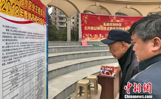 居民查看小區(qū)2018年度財(cái)務(wù)收支報(bào)告 董曉斌 攝