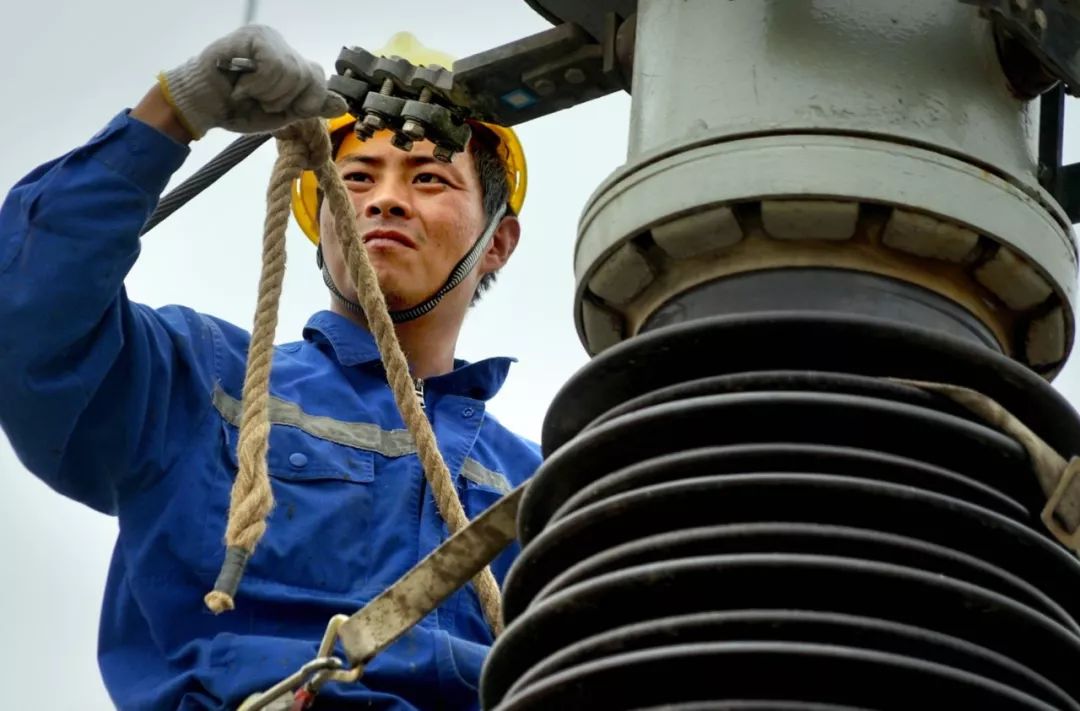中國(guó)鐵路鄭州局集團(tuán)有限公司新鄉(xiāng)供電段工作人員在河南淇縣牽引變電所進(jìn)行高空作業(yè)。