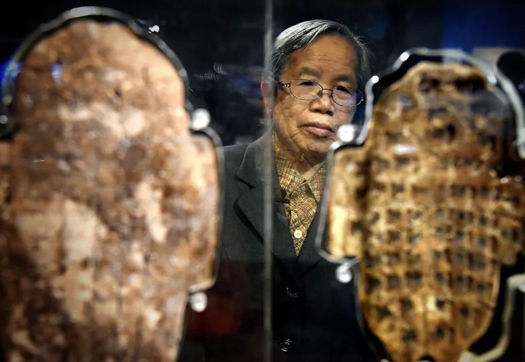 考古學(xué)家劉一曼在河南安陽(yáng)殷墟博物館觀看她親手發(fā)掘的卜甲。