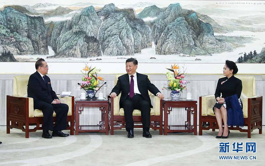 1月27日,中共中央總書記、國家主席習(xí)近平和夫人彭麗媛在北京會見以朝鮮勞動黨中央政治局委員、中央副委員長、國際部部長李洙墉為團(tuán)長的朝鮮友好藝術(shù)團(tuán)。 新華社記者 謝環(huán)馳 攝