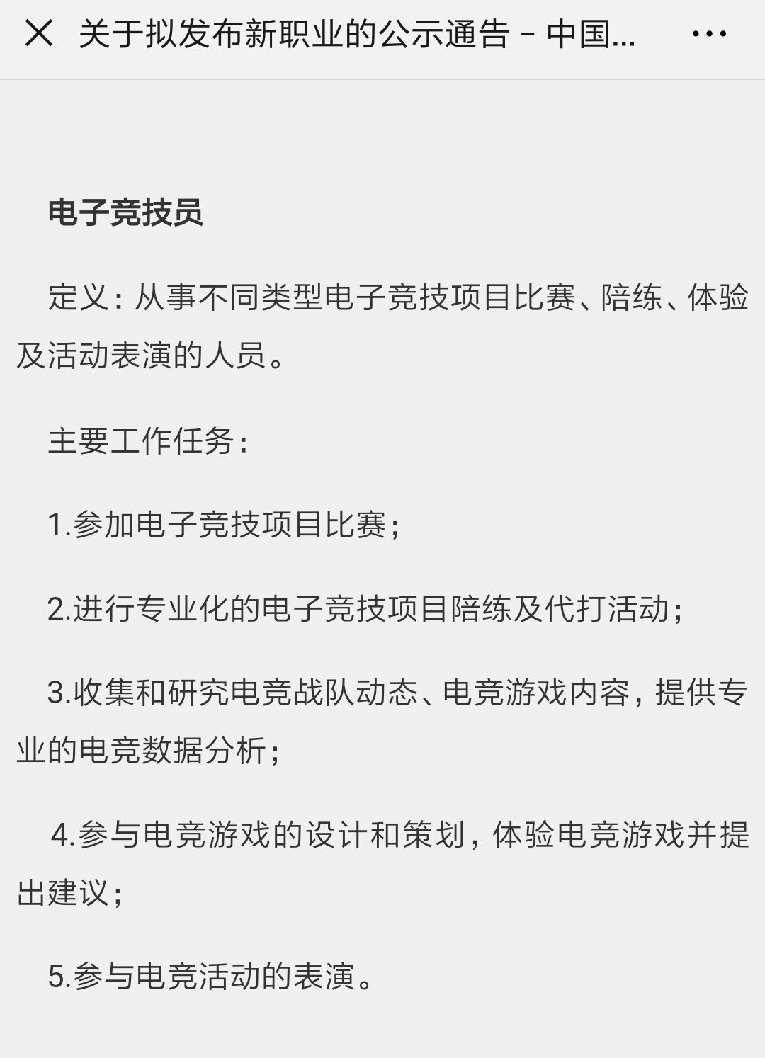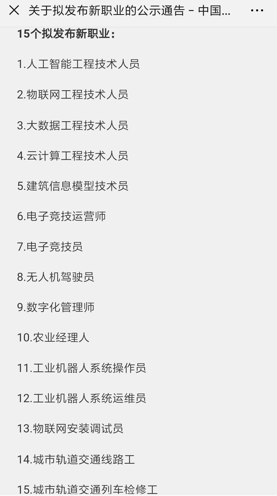 中新網(wǎng)客戶端1月28日電 (李金磊)人社部近日發(fā)布公示通告,擬發(fā)布15個新職業(yè),包括人工智能、物聯(lián)網(wǎng)、大數(shù)據(jù)、云計算的工程技術(shù)人員,電子競技員、電子競技運營師、無人機駕駛員等也入圍。其中,電子競技員的主要任務包括參加電子競技項目比賽,進行專業(yè)化的電子競技項目陪練及代打活動,等等。你想去從事哪個新職業(yè)?