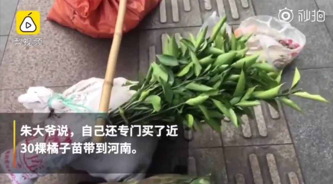 1月22日,四川成都的朱大爺說兒子已在河南安家,讓他今年去河南過年。大爺挑了六七十斤橘子,還特意買了30棵橘子樹,想著往后結(jié)果兒子就能摘來吃。