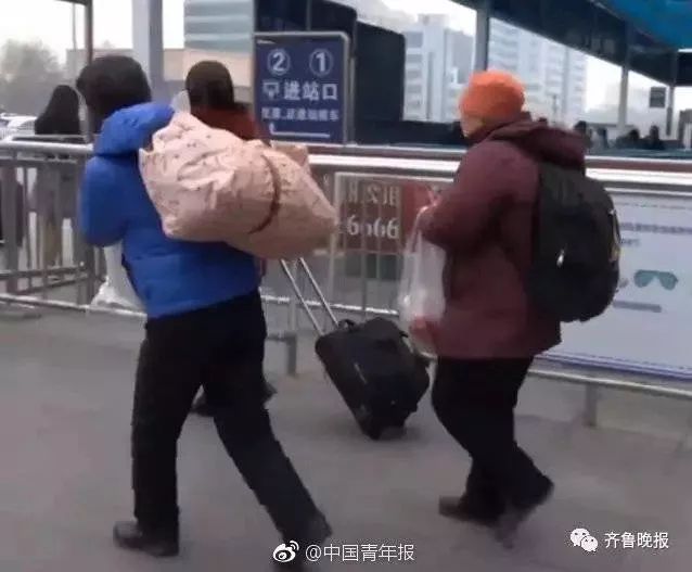 1月19日,山東淄博火車站,一對扛了超大包裹的老夫妻引起了大家的注意。經(jīng)過詢問得知,老人是要坐高鐵去杭州陪兒子過年。這次他們帶了60多斤面粉還有一床被子,準(zhǔn)備給兒子。大爺稱,這是他70多年第一次出遠(yuǎn)門,打算去西湖看看。