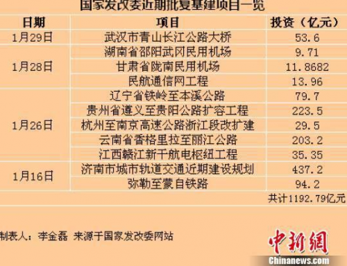 更早前的1月16日,國(guó)家發(fā)改委批復(fù)了新建彌勒至蒙自鐵路項(xiàng)目、濟(jì)南市城市軌道交通近期建設(shè)規(guī)劃,這兩大項(xiàng)目總投資為531.4億元。至此,從1月16日至1月29日,國(guó)家發(fā)改委先后分四批次共批復(fù)了11個(gè)基建項(xiàng)目,總投資達(dá)到1192.79億元。