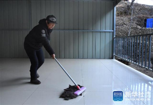 ↑堂上村村民隗露云在自己開辦的農家樂打掃衛生(1月25日攝)。