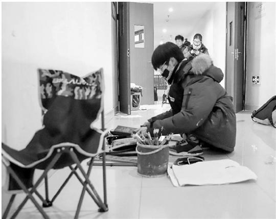因為考試太頻繁,畫畫時穿的工作服都來不及換洗,小呂身上花花綠綠的。“無所謂了,不在乎形象了,最重要的還是取得好成績。”