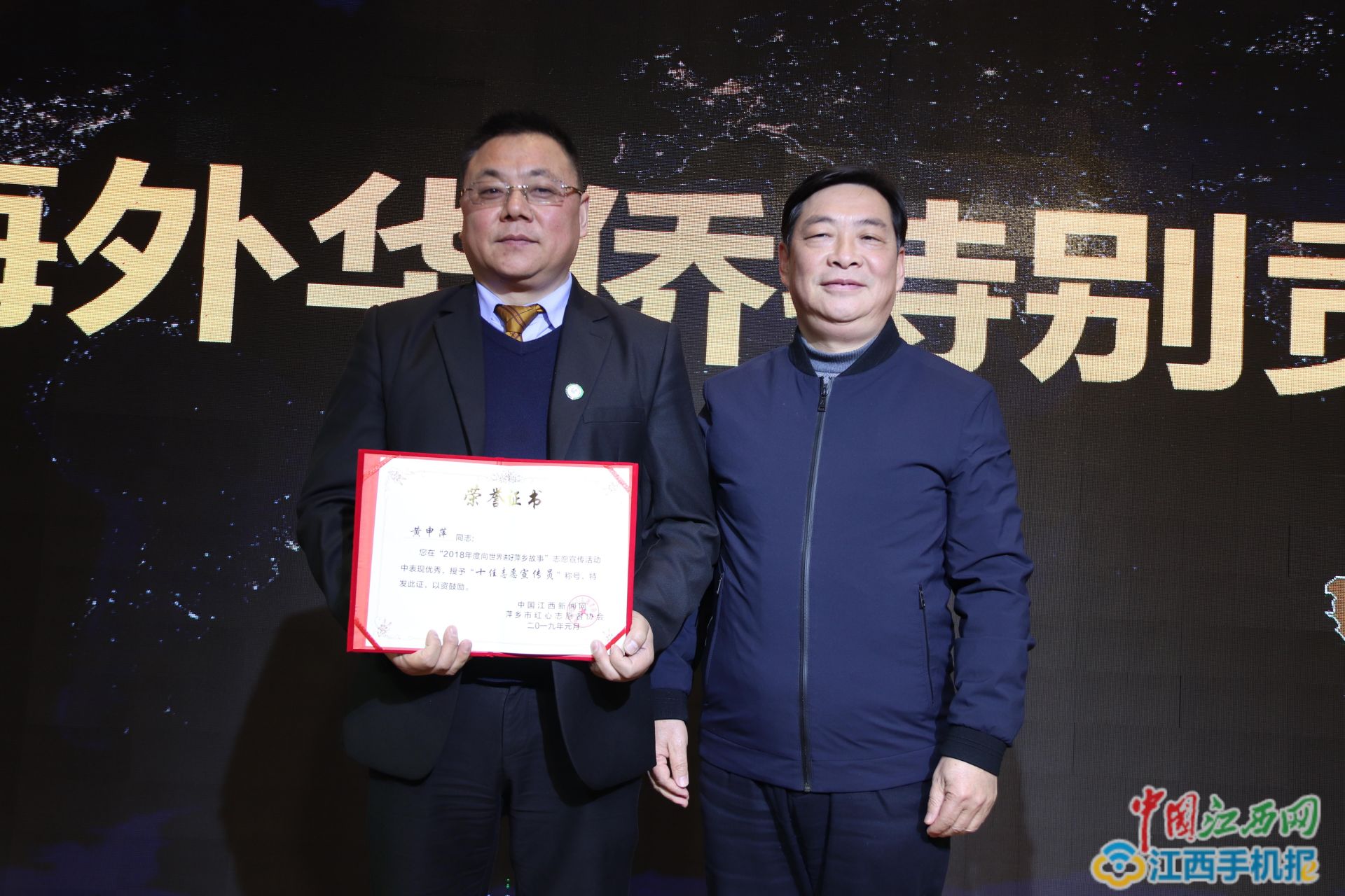 何文斌為獲2018年度中國江西網“向世界講好萍鄉故事”海外華僑特別貢獻獎獲獎者頒獎