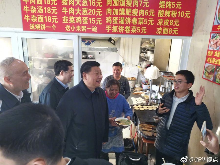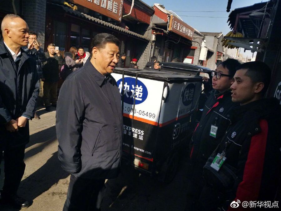 2月1日中午,習(xí)近平結(jié)束在北京市前門東區(qū)看望慰問乘車返回途中,特意走進(jìn)位于前門石頭胡同的快遞服務(wù)點(diǎn)、小吃店,看望仍在工作的“快遞小哥”等勞動(dòng)者,了解他們工作和生活情況。
