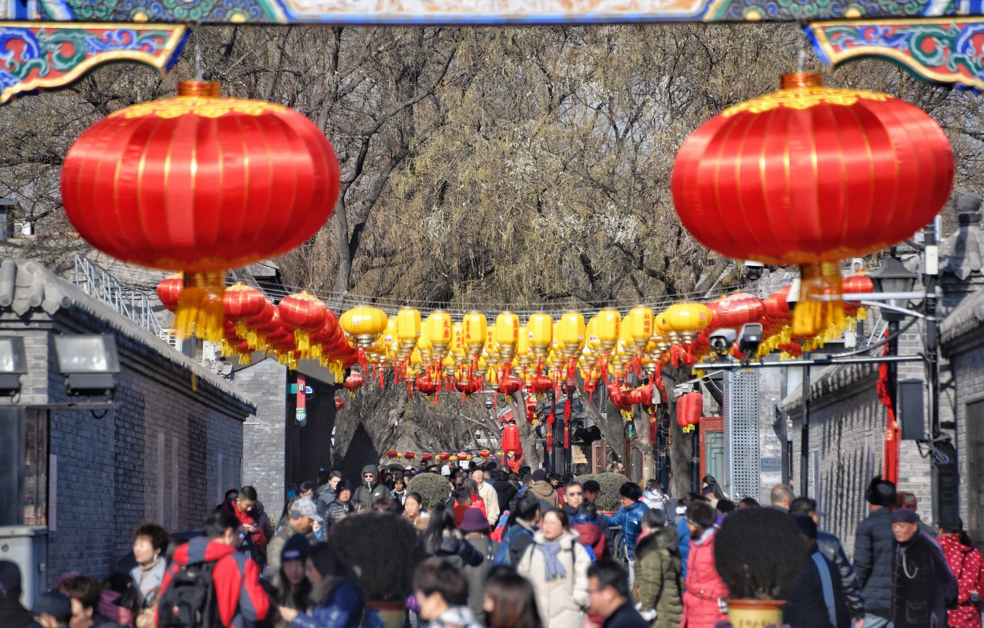 春節(jié)即將來臨,北京市大街小巷懸掛起燈籠、中國結(jié)等,節(jié)日氣氛漸濃。