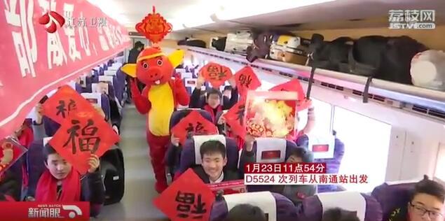 1月23日11點54分,D5524 次列車從南通站出發,車上有19位在南通讀書,回甘肅過年的孩子。這19位孩子來自國家級貧困縣--甘肅省康樂縣,在愛心人士資助下,來到江蘇南通虹橋二中讀書。每逢寒暑假,他們才會回到千里之外的家鄉,和親人團聚。