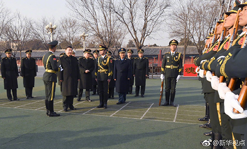 臨近春節(jié),首都北京洋溢著節(jié)日氣氛。上午9時15分許,習(xí)近平來到位于故宮端門東朝房的國旗中隊。戰(zhàn)士們正在訓(xùn)練場上進(jìn)行護(hù)旗隊列動作和展旗收旗訓(xùn)練,習(xí)近平仔細(xì)觀看,并同官兵親切交談。國旗中隊進(jìn)行了升旗動作演示,整個過程精準(zhǔn)流暢、鏗鏘有力,習(xí)近平露出贊許的目光,勉勵大家練好基本功,承擔(dān)好國旗護(hù)衛(wèi)職責(zé)。