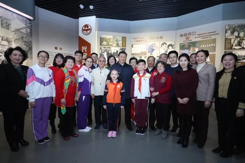 2019年1月17日上午,在天津市和平區新興街朝陽里社區,習近平走進社區志愿服務展館。社區志愿者們見到總書記十分激動,紛紛講述自己的“志愿故事”。習近平為社區志愿者們點贊,稱贊他們是為社會作出貢獻的前行者、引領者。