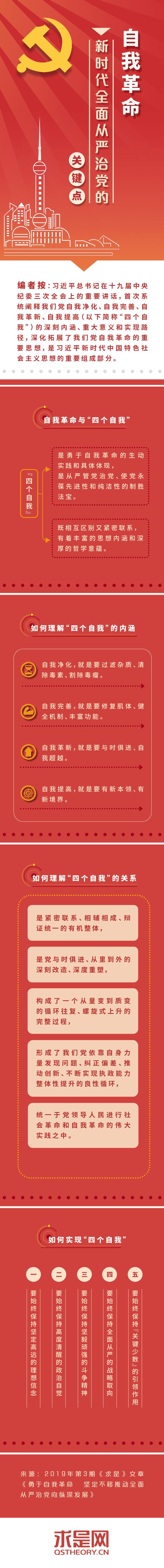 編者按:習近平總書記在十九屆中央紀委三次全會上的重要講話,首次系統闡釋我們黨自我凈化、自我完善、自我革新、自我提高(以下簡稱“四個自我”)的深刻內涵、重大意義和實現路徑,深化拓展了我們黨自我革命的重要思想,是習近平新時代中國特色社會主義思想的重要組成部分。